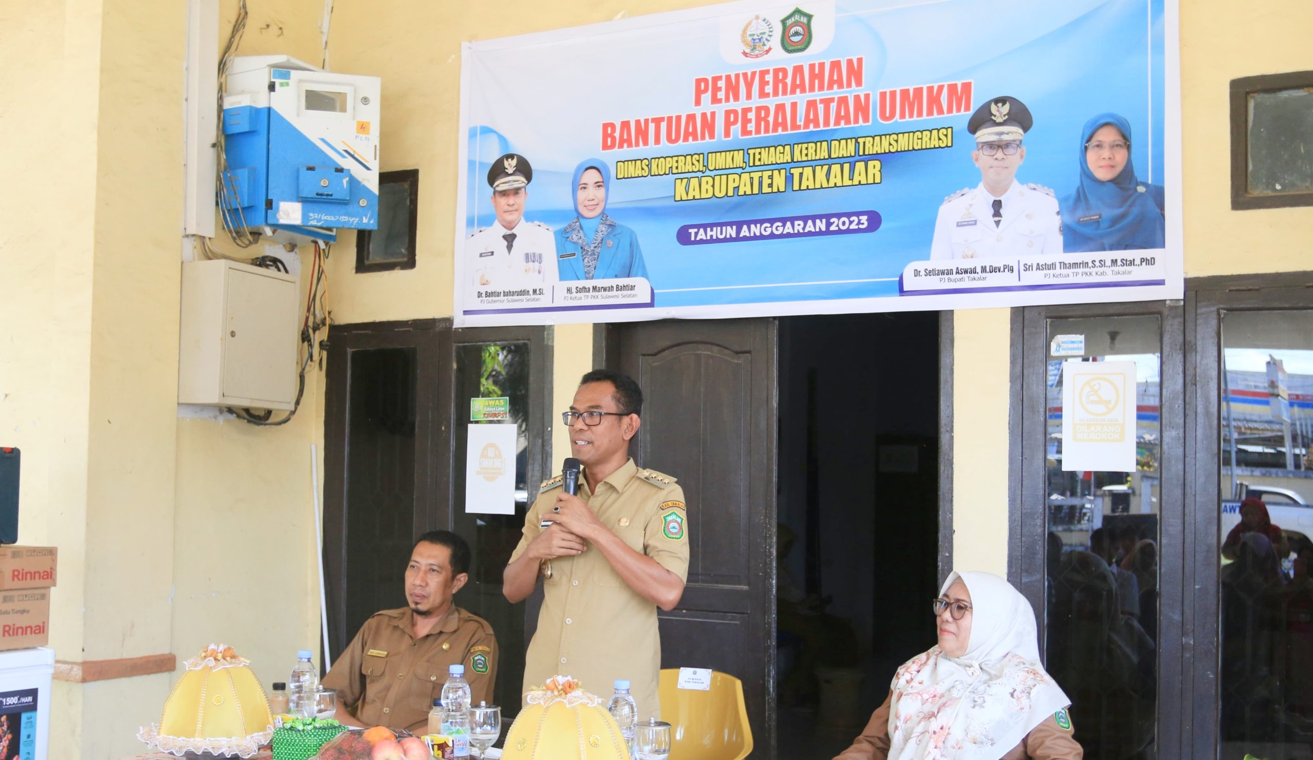 JURNAL TAKALAR – Sebanyak 28 pelaku UMKM menerima fasilitas peralatan unit usaha yang diserahkan secara simbolis oleh Pj. Bupati Takalar Setiawan Aswad di Kantor Dinas Koperasi, UKM, Tenaga Kerja dan Transmigrasi Takalar, Selasa (20/2/2024).