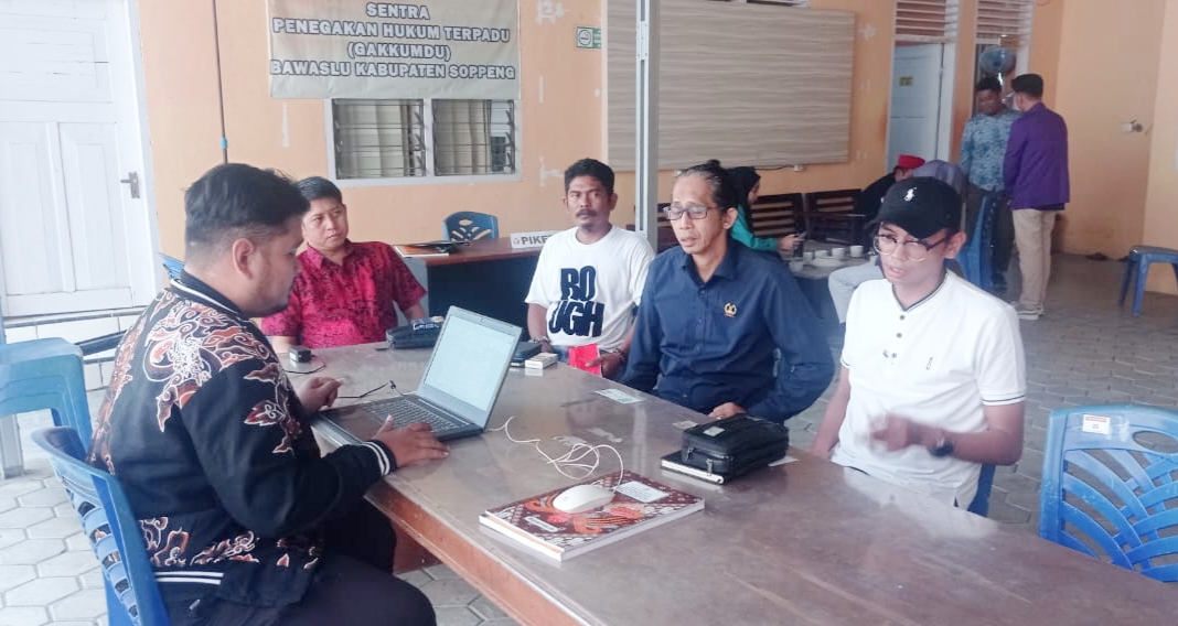 Ketua Direktorat Hukum dan Advokasi, Arham MSi La Palellung didampingi oleh Sekretaris Divisi Hukum, Muh. Ichwan Syawal Syam melaporkan tiga kasus dugaan yang dinilai melanggar jalannya demokrasi Pilkada Soppeng.