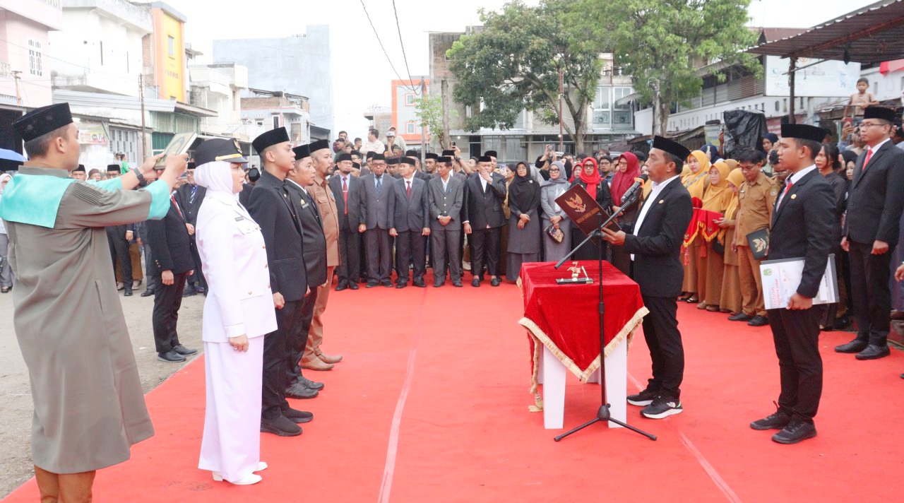 Dalam sambutannya, Bupati Syaharuddin menjelaskan bahwa pelantikan sengaja digelar di luar ruangan, khususnya di area pasar, agar para pejabat yang dilantik bisa melihat langsung kondisi masyarakat dan pusat perputaran ekonomi.