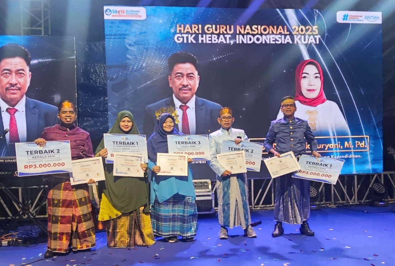 “Selamat dan sukses atas prestasi gemilang para guru Sidrap dalam Apresiasi GTK 2025. Prestasi ini adalah bukti nyata dedikasi dan semangat inovasi mereka. Semoga ini menjadi motivasi besar bagi seluruh guru di Sulawesi Selatan untuk terus berkarya dan berinovasi demi masa depan pendidikan,” ujarnya.