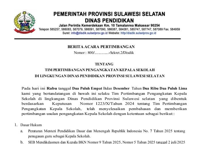 MAKASSAR – Lembaga Swadaya Masyarakat Pembela Rakyat (LSM PERAK) Indonesia mengecam keras dugaan ketidakprofesionalan Dinas Pendidikan Provinsi Sulawesi Selatan. Hal ini menyusul beredarnya draf berita acara pertimbangan pengisian jabatan kepala sekolah SMA, SMK, dan SLB negeri di Sulsel yang seharusnya bersifat internal.
