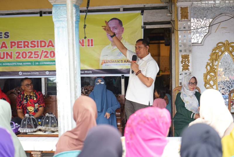 GOWA – Anggota Komisi D DPRD Provinsi Sulawesi Selatan sekaligus Ketua Fraksi Partai Golkar, H. Lukman B. Kady, melaksanakan Reses Masa Persidangan II Tahun 2025/2026 titik kedua di Kelurahan Mawang, Kecamatan Somba Opu, Kabupaten Gowa, Senin (16/2/2026).