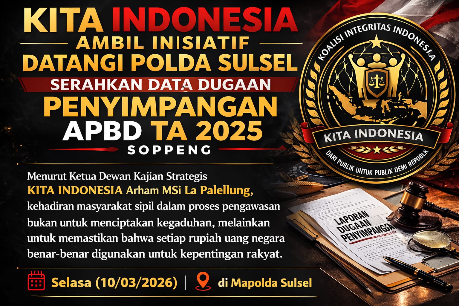 KITA INDONESIA dan LHI Datangi Polda Sulsel Beri Klarifikasi soal Dugaan Penyimpangan APBD Soppeng